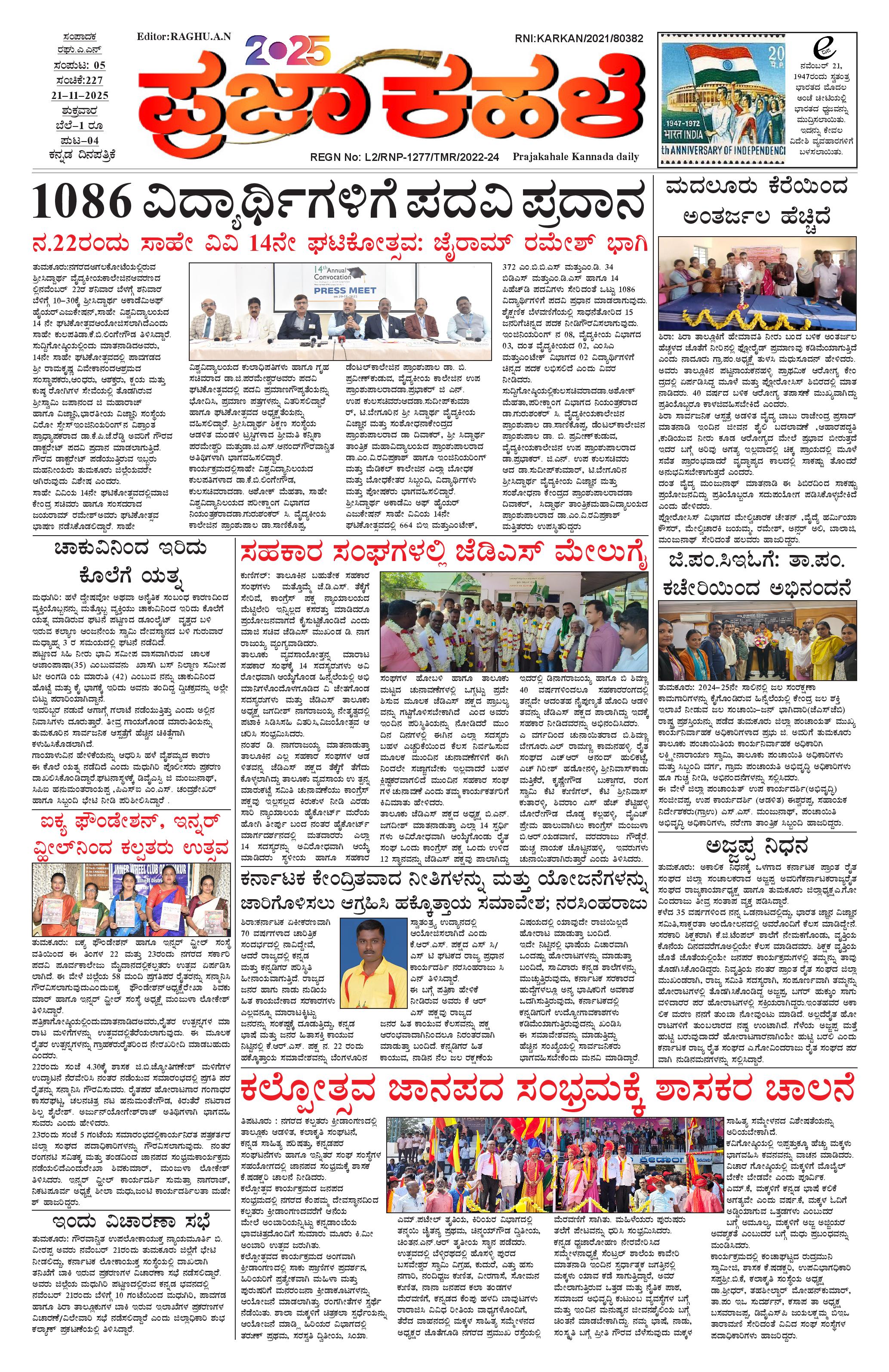ಪ್ರಜಾ ಕಹಳೆ 21 ನವೆಂಬರ್ 2025