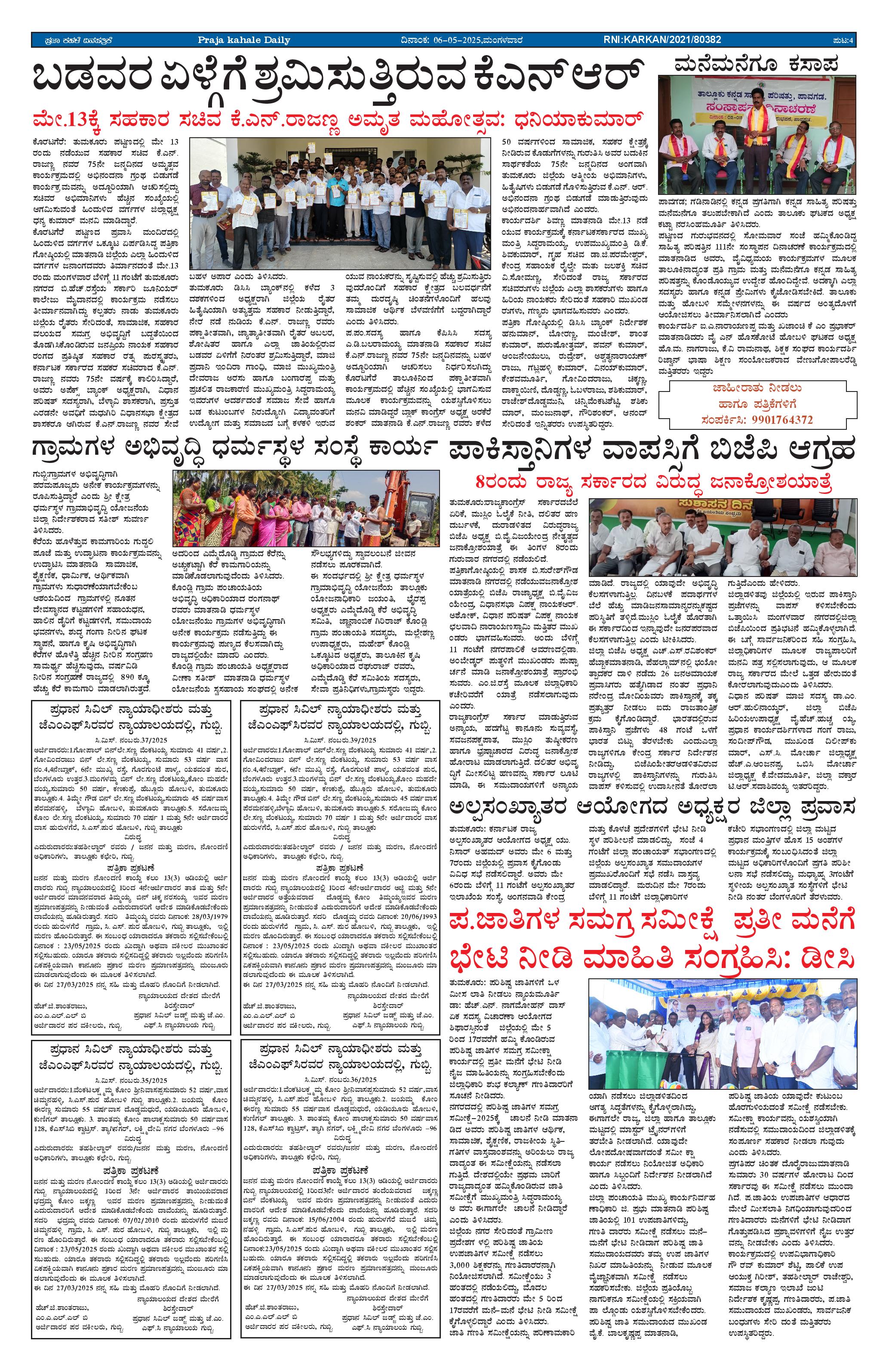 ಪ್ರಜಾ ಕಹಳೆ 06 ಮೇ 2025 Page: 4 May 06, 2025 << First << 4 >> Last >> Page 1Page 2Page 3Page 4 × ಪ್ರಜಾ ಕಹಳೆ 06 ಮೇ 2025 PK_06_05_2025-page-001PK_06_05_2025-page-002PK_06_05_2025-page-003PK_06_05_2025-page-004 << First << 4 >> Last >> PK_06_05_2025-page-001PK_06_05_2025-page-002PK_06_05_2025-page-003PK_06_05_2025-page-004 PK_06_05_2025-page-004