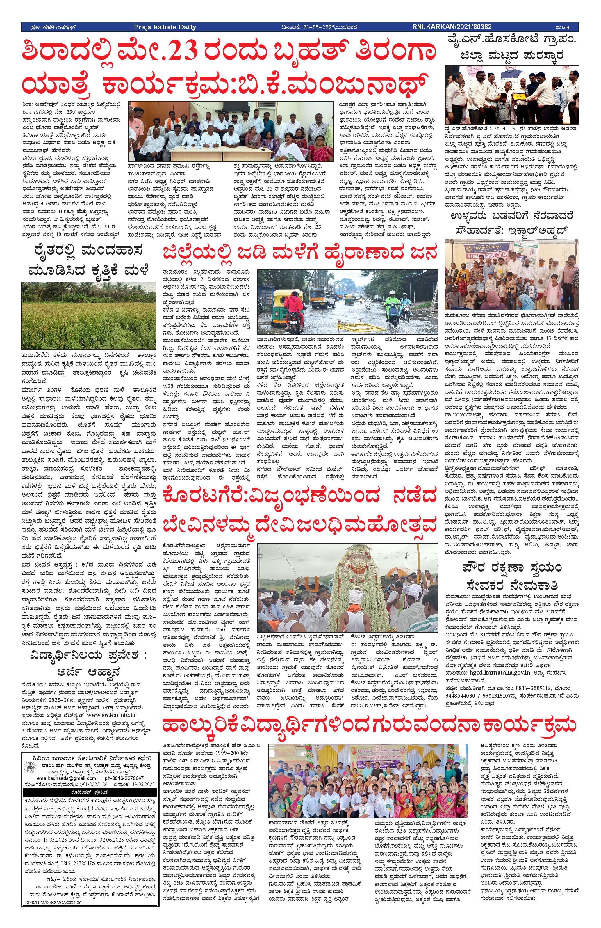 ಪ್ರಜಾ ಕಹಳೆ 21 ಮೇ 2025 Page: 4 May 21, 2025 << First << 4 >> Last >> Page 1Page 2Page 3Page 4 × ಪ್ರಜಾ ಕಹಳೆ 21 ಮೇ 2025 PK_21_05_2025-page-001PK_21_05_2025-page-002PK_21_05_2025-page-003PK_21_05_2025-page-004 << First << 4 >> Last >> PK_21_05_2025-page-001PK_21_05_2025-page-002PK_21_05_2025-page-003PK_21_05_2025-page-004 PK_21_05_2025-page-004