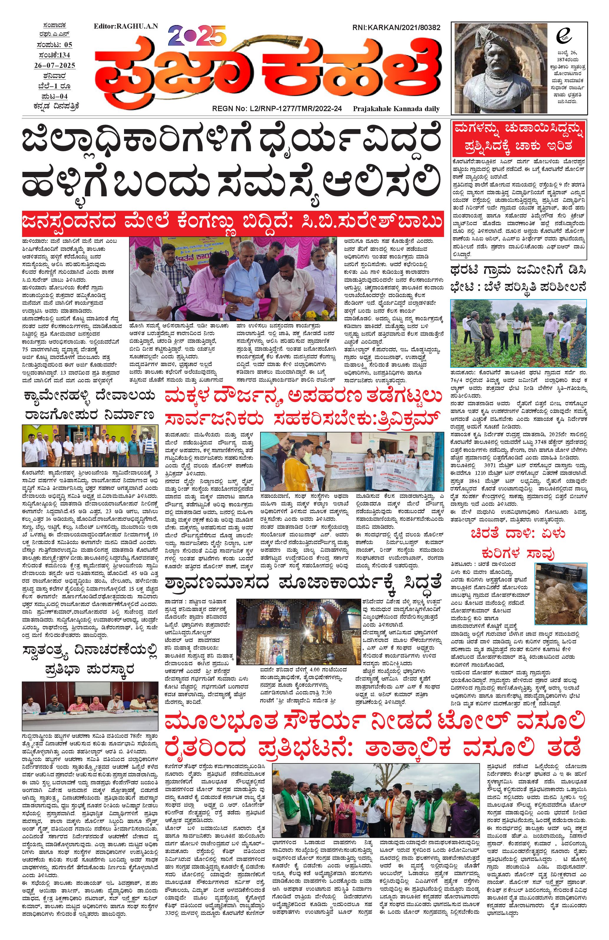 ಪ್ರಜಾ ಕಹಳೆ 26 ಜುಲೈ 2025