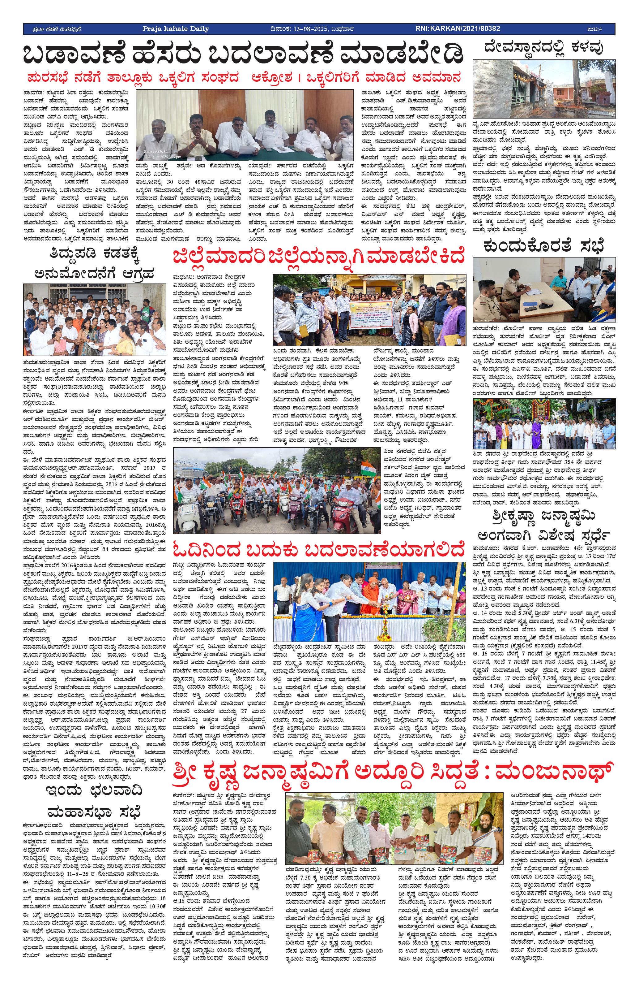 ಪ್ರಜಾ ಕಹಳೆ 13 ಆಗಸ್ಟ್ 2025 Page: 4 August 13, 2025 << First << 4 >> Last >> Page 1Page 2Page 3Page 4 × ಪ್ರಜಾ ಕಹಳೆ 13 ಆಗಸ್ಟ್ 2025 PK_13_08_2025-page-001PK_13_08_2025-page-002PK_13_08_2025-page-003PK_13_08_2025-page-004 << First << 4 >> Last >> PK_13_08_2025-page-001PK_13_08_2025-page-002PK_13_08_2025-page-003PK_13_08_2025-page-004 PK_13_08_2025-page-004