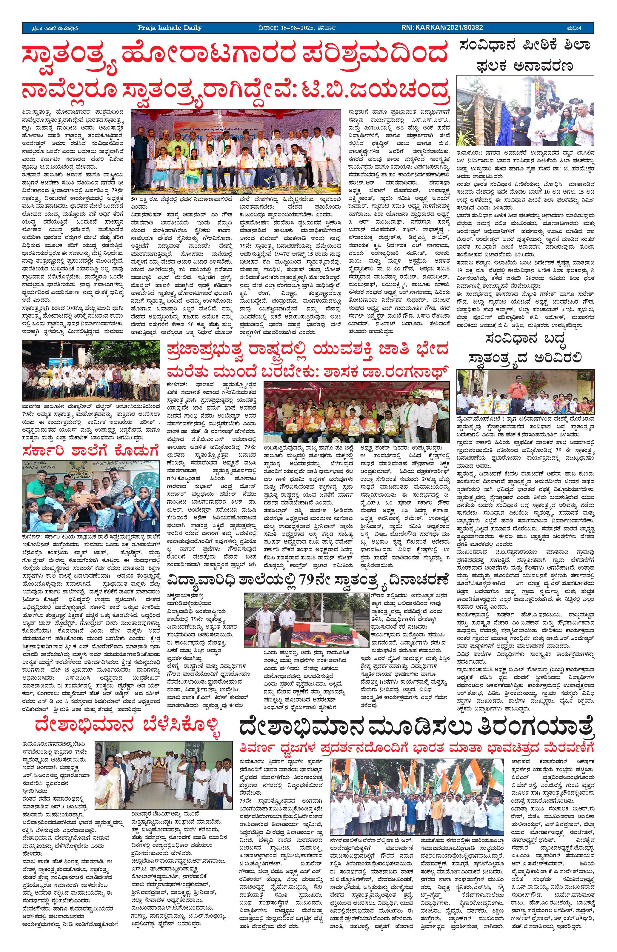 ಪ್ರಜಾ ಕಹಳೆ 16 ಆಗಸ್ಟ್ 2025 Page: 4 August 16, 2025 << First << 4 >> Last >> Page 1Page 2Page 3Page 4 × ಪ್ರಜಾ ಕಹಳೆ 16 ಆಗಸ್ಟ್ 2025 PK_16_08_2025-page-001PK_16_08_2025-page-002PK_16_08_2025-page-003PK_16_08_2025-page-004 << First << 4 >> Last >> PK_16_08_2025-page-001PK_16_08_2025-page-002PK_16_08_2025-page-003PK_16_08_2025-page-004 PK_16_08_2025-page-004