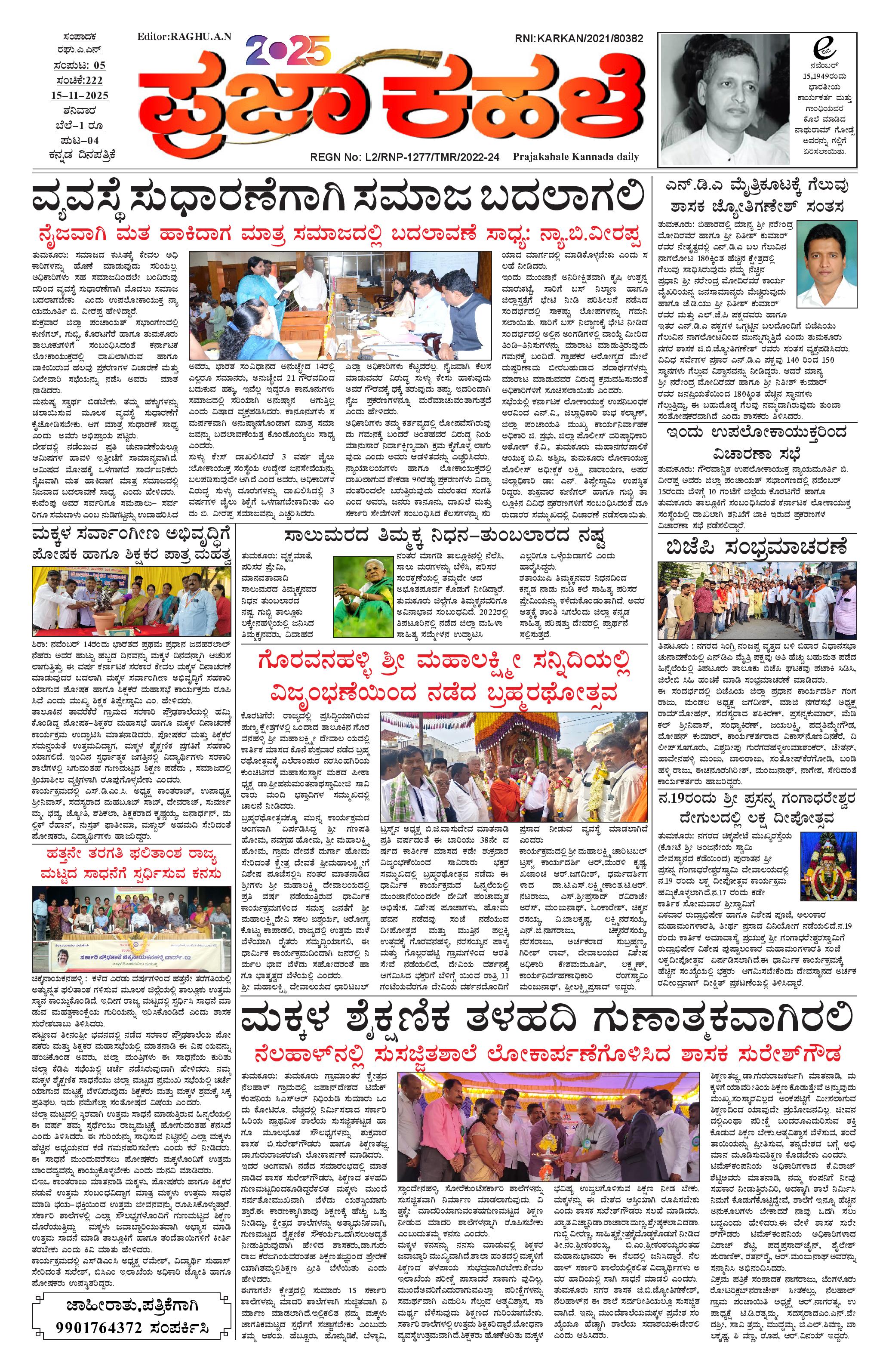 ಪ್ರಜಾ ಕಹಳೆ 15 ನವೆಂಬರ್ 2025 November 15, 2025 << First << 1 >> Last >> Page 1Page 2Page 3Page 4 × ಪ್ರಜಾ ಕಹಳೆ 15 ನವೆಂಬರ್ 2025 PK_15_11_2025-page-001PK_15_11_2025-page-002PK_15_11_2025-page-003PK_15_11_2025-page-004 << First << 1 >> Last >> PK_15_11_2025-page-001PK_15_11_2025-page-002PK_15_11_2025-page-003PK_15_11_2025-page-004 PK_15_11_2025-page-001