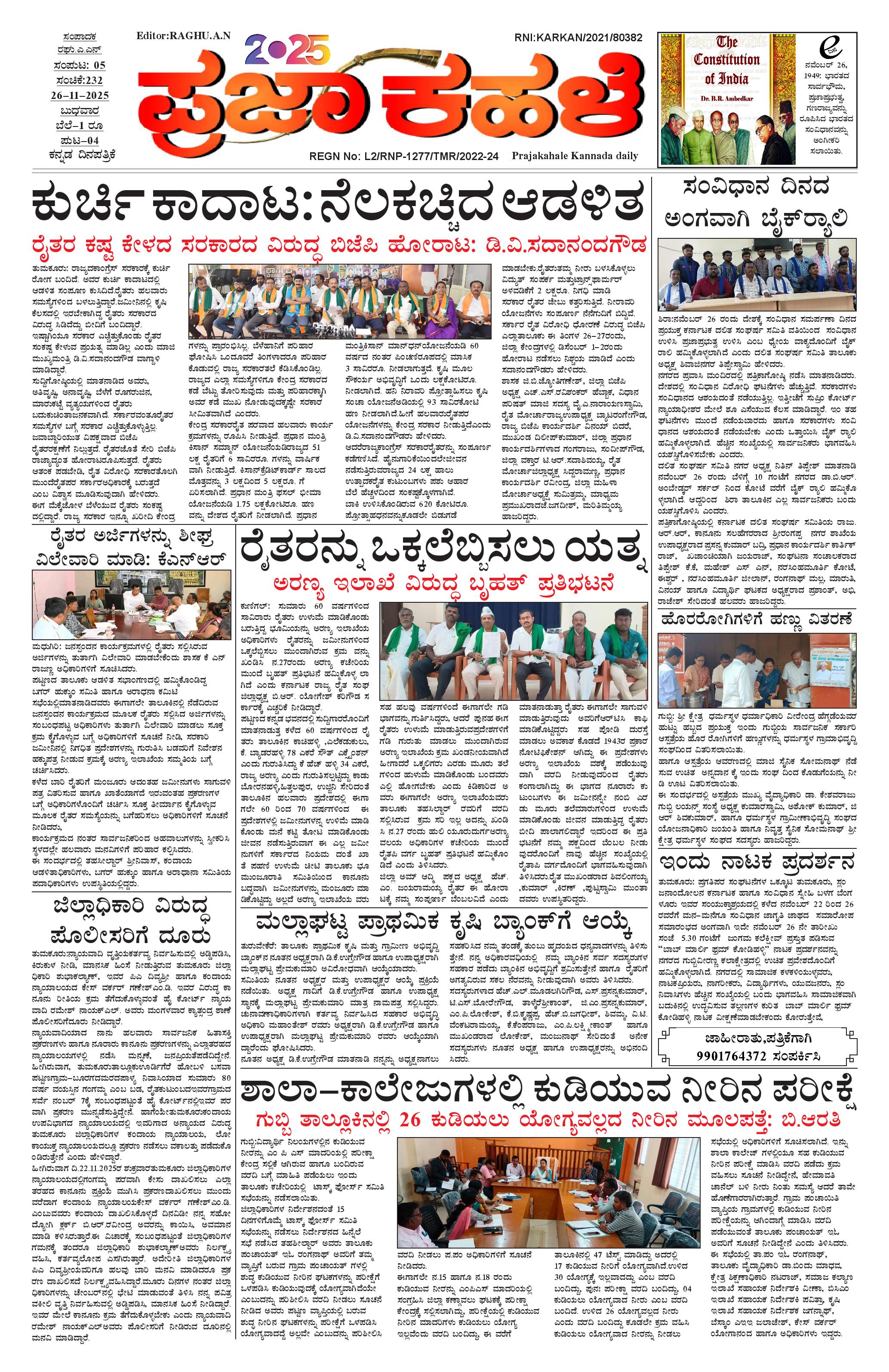 ಪ್ರಜಾ ಕಹಳೆ 26 ನವೆಂಬರ್ 2025 November 26, 2025 << First << 1 >> Last >> Page 1Page 2Page 3Page 4 × ಪ್ರಜಾ ಕಹಳೆ 26 ನವೆಂಬರ್ 2025 PK_26_11_2025-page-001PK_26_11_2025-page-002PK_26_11_2025-page-003PK_26_11_2025-page-004 << First << 1 >> Last >> PK_26_11_2025-page-001PK_26_11_2025-page-002PK_26_11_2025-page-003PK_26_11_2025-page-004 PK_26_11_2025-page-001